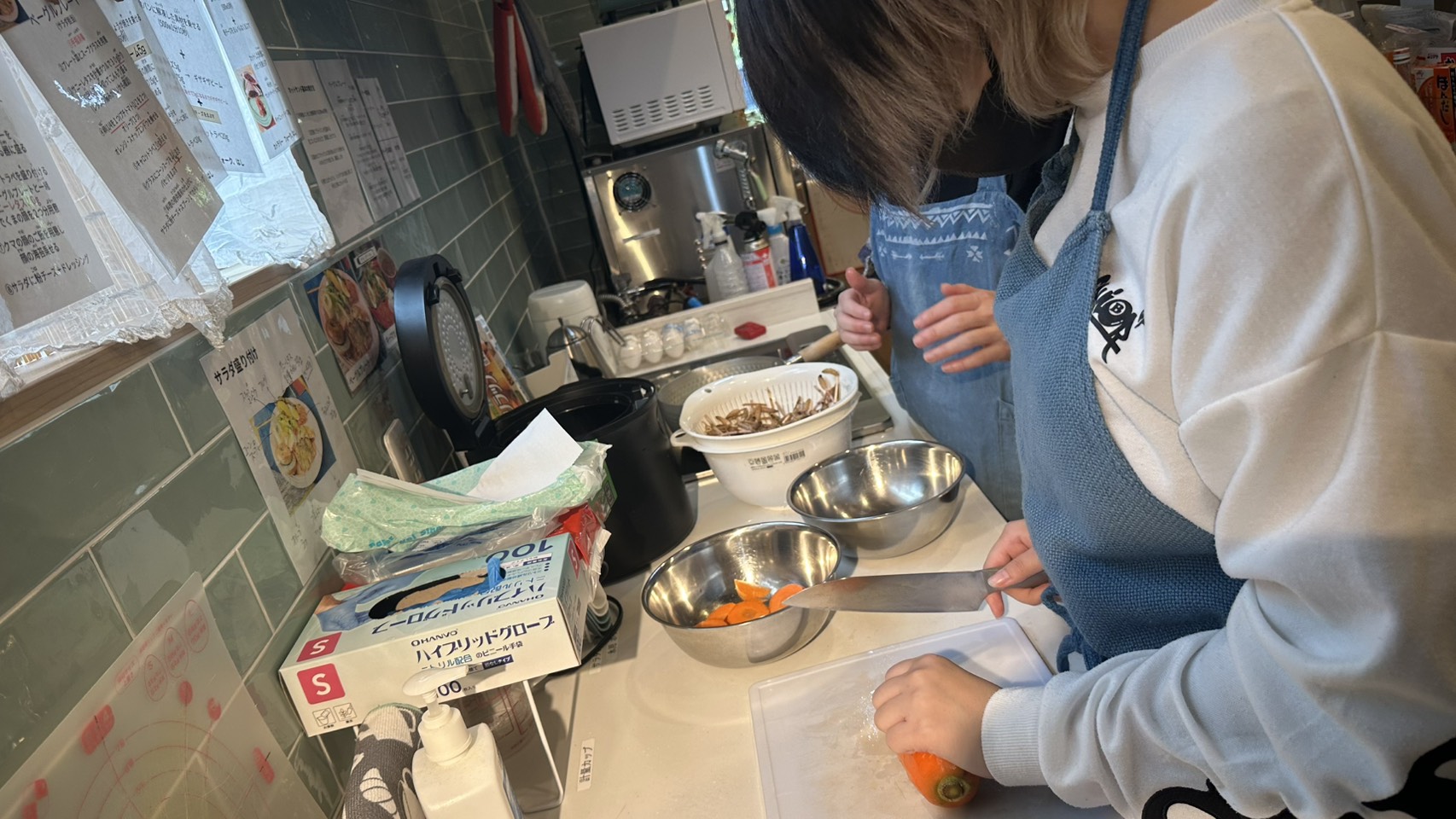 和の花では、作業の一つ一つを大切にしながら、みんなで取り組んでいます。新しいベーグルの試作も、買い出しも、洗濯も、それぞれが役割を持ち、力を合わせて進めていきます。